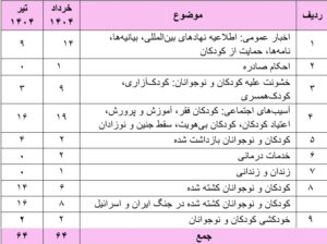 گزارش نقص حقوق کودک در تیر ماه ۱۴۰۴