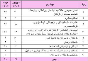 گزارش نقض حقوق کودک و نوجوان در شهریور ماه ۱۴۰۴