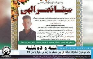 ۲۴.دی.۱۴۰۲ هرانا یک نوجوان شانزده ساله در شهرستان پیرانشهر از طریق حلق آویز کردن به زندگی خود پایان داد. به گزارش خبرگزاری هرانا، ارگان خبری مجموعه فعالان حقوق بشر در ایران، طی روز های اخیر، یک نوجوان در پیرانشهر به زندگی خود پایان داد. هویت وی، سینا نصرالهی، شانزده ساله، فرزند عزیز و اهل پیرانشهر، …