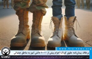 ۱۴۰۴/۰۸/۱۷ هرانا برخلاف تعهدات بینالمللی ایران تحت عنوان الحاق به پیماننامه حقوق کودک و تعهدات مربوط به عدم بهکارگیری کودکان در امور نظامی، ۲،۷۱۹ دانش آموز از شهرستانهای یزد، بهشهر، پاوه، آستارا، نرماشیر، آستانه اشرفیه، کیاشهر، آزادشهر، اردل، باغملک، لالی، کهگیلویه، لنده، کلاله، فهرج، چرداول و دلوار، به اردوی موسوم به “راهیان نور” در مناطق …
