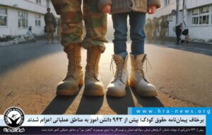 ۱۴۰۴/۰۸/۱۸ هرانا برخلاف تعهدات بینالمللی ایران تحت عنوان الحاق به پیماننامه حقوق کودک و تعهدات مربوط به عدم بهکارگیری کودکان در امور نظامی، بیش از ۸۸۰ دانشآموز از شهرستانهای سیریک، ساوه، پادکشت، خاش، ارسنجان و شوشتر به اردوی موسوم به “راهیان نور” در مناطق عملیاتی کشور اعزام شدند.