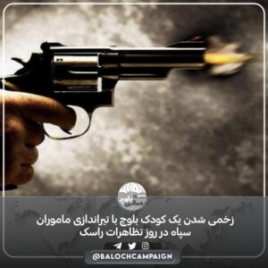 زخمی شدن یک کودک بلوچ با تیراندازی ماموران سپاه در روز تظاهرات راسک