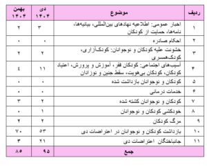 گزارش نقض حقوق کودک و نوجوان، دی ماه۱۴۰۴