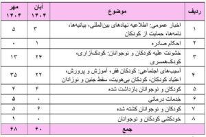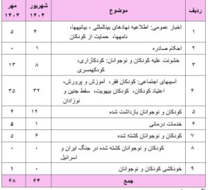 گزارش نقض حقوق کودک و نوجوان، مهر ماه ۱۴۰۴