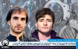 ۱۴۰۴/۱۱/۲۷ هرانا رضا شجاع مزرجی، معلم در سرخس، ساناز شاهحسینی در تهران، مهدی ساورعلیا در کرج، علی پروین و محمدامین سلطانزاده، دو دانشجو در تبریز و هشت نوجوان زیر ۱۷ سال به نامهای امیرسام حیدریان، امیرحسین رازنهان، آرسام صفائی، ایلیا نکوییفر، امیرعلی دلروز، امیرهمایون رومینا، ابوالفضل کناری و علیعباس شمسائی مقدم در یاسوج توسط نیروهای …