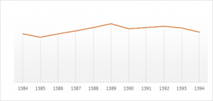 نکته دیگری که در رابطه با دادههای آماری ازدواج دختران زیر ۱۵ سال در کشور وجود دارد، این است که با مقایسه این روند آماری در طی یک دوره ۱۰ ساله، میبینیم که از سال ۸۴ با کاهشی در ازدواج کودک مواجه هستیم. کاهشی که از سال ۸۵ تا ۸۹ مجدد رو به افزایش گذاشته و سپس از سال ۸۹ تا ۹۰ باز روند کاهشی به خود میگیرد. این روند همچنین از سال ۹۰ تا ۹۳ اینبار با شیب کمتری افزایش محدودی داشته و سال ۹۴ نمودار آن مجدد به پایین نزول میکند. همچنین لازم به ذکر است که بیشترین میزان ازدواج گروه سنی دختران کمتر از ۱۵ سال با پسران ۲۰ تا ۲۴ سال بوده است.