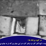 زهرا یکی دیگر از این کودکان است، نمی خواهد با ما صحبت کند، با اکراه به سوال ها پاسخ کوتاه می دهد و از ما فاصله می گیرد، به او نزدیک می شوم، می پرسم: “چرا از من دور می شوی؟”