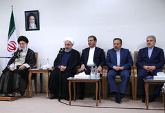 رهبر انقلاب اسلامی در ابتدای این دیدار با تبریک عید سعید غدیرخم و سالروز ولادت حضرت امام موسی بن جعفر علیهالسلام و همچنین هفته دولت، و گرامیداشت یاد و خاطره شهیدان رجایی و باهنر گفتند: هفته دولت شاخص و نشانه ای است که با یادآوری خدمات و تلاش های یکسال گذشته، از یک طرف می تواند مایه دلگرمی باشد و از طرف دیگر، چنانچه این تلاشها با دو شرط مهم «حرکت جهادی» و «نیت الهی» همراه شود، زمینه ساز برکات زیادی در جامعه خواهد شد.