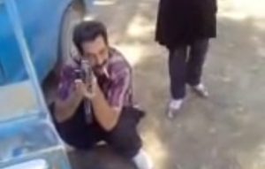 در این کلیپ دیده می شد که مردی جوان کنار یک نیسان آبی نشسته است و اسلحه ای در دست دارد. اوضاع عادی به نظر می رسد. مرد جوان که فرهاد نام داشت از دختر کوچکترش می خواهد سنگی را در فاصله ای دور بگذارد تا به آن شلیک کند. دختر دیگرش هم همان حوالی مشغول گشت زدن است و دختر بزرگتر دارد از صحنه بازی خواهرانش فیلم می گیرد.