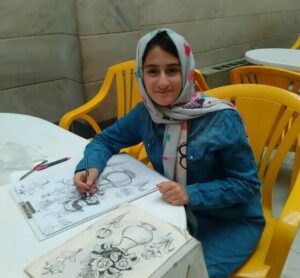 متوجه علاقهی عارفه به نقاشی که شدم، در پنج سالگی او را به کلاسهای کانون در محلمان بردم و به مربی و مسئول کتابخانه محل، شرایط عارفه را توضیح دادم که بیشفعال و ناشنوا است، دم ظهر که رفتم عارفه را برگردانم، معلمش گفت “عارفه نقاشیهایی که میکشد که من خودم از کشیدن آن عاجزم” ما اینجا نقاشیهایی در حد طراحی سیب و گلابی به بچهها یاد میدهیم، اما عارفه تاکسی و خیابان و سرویس مدرسه را طراحی میکند”.