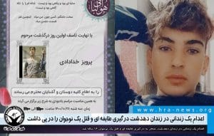 هویت این زندانی پرویز خدادادی، ۳۰ ساله، متاهل، پدر دو فرزند، اهل روستای برجعلیشیر از توابع دهدشت توسط هرانا احراز شده است.