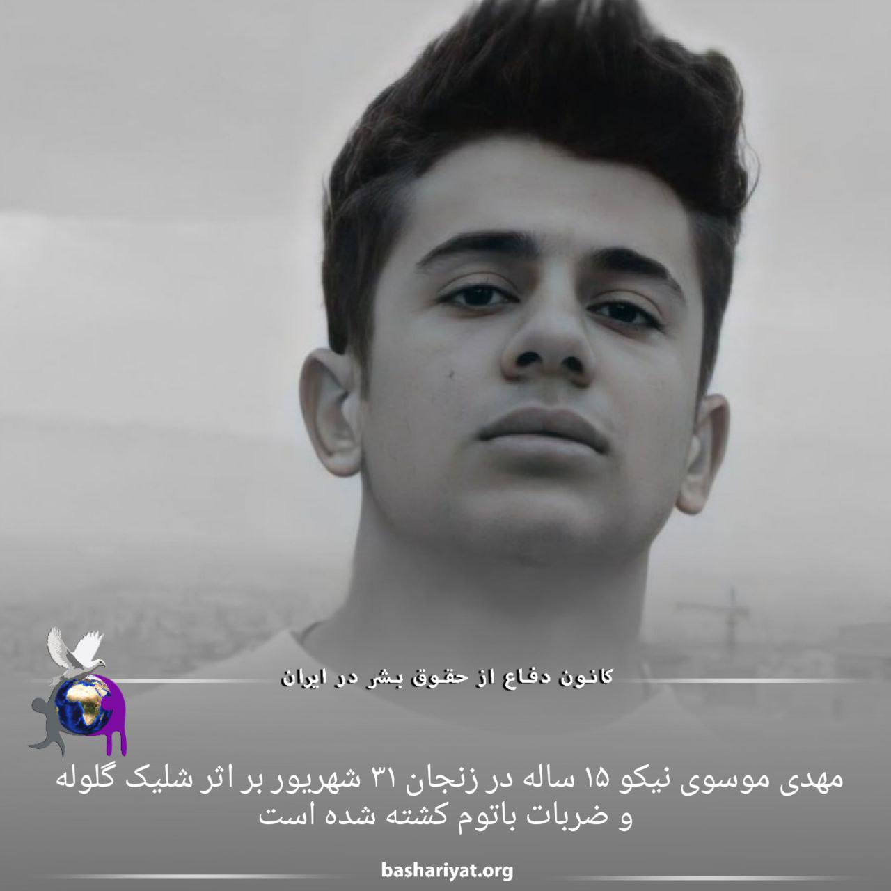 جان باختن امیدصفرزهی ۱۷ساله با اصابت گلوله توسط ماموران امنیتی