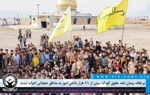 برخلاف تعهدات بین المللی ایران تحت عنوان الحاق به پیمان نامه حقوق کودک و بخش عدم به کارگیری کودکان در امور نظامی، طی سال تحصیلی جاری ۱۱۰۰۰ دانش آموز از استان های یزد و کرمان به اردوی موسوم به “راهیان نور” در مناطق عملیات کشور اعزام شدند.همچنین طی روزهای اخیر ۲۵۰ دانش آموز پسر از شهرستان شاهرود به مناطق عملیاتی جنوب کشور اعزام شدند.