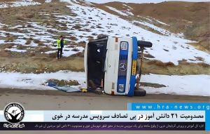 به گزارش خبرگزاری هرانا به نقل از ایسنا، ۲۱ دانش آموز طی یک سانحه رانندگی در خوی مصدوم شدند.