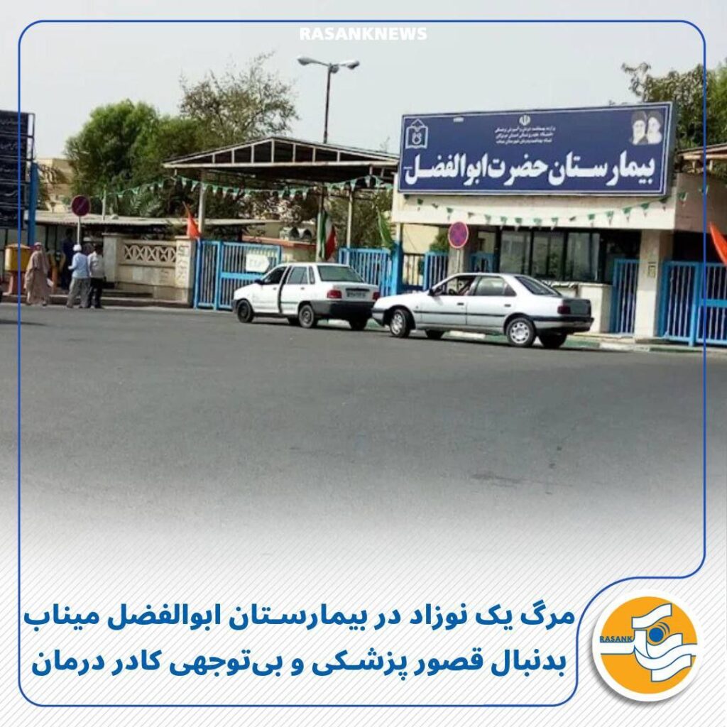 روز سهشنبه ۷ مرداد ماه ۱۴۰۴، قصور پزشکی و بیتوجهی کادر درمان بیمارستان ابوالفضل میناب نسبت به وضعیت پرخطر یک زن باردار، به مرگ نوزاد وی در زایشگاه این بیمارستان منجر شده است؛ اتفاقی تلخ که بار دیگر ناتوانی ساختار درمانی در تأمین سلامت بیماران را بهویژه در موارد حساس و پرریسک نشان میدهد.