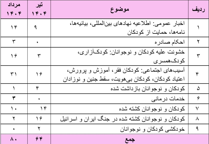 این گزارشات آماری از میان بیش از ۸۰ خبر که در طول مرداد ماه ۱۴۰۴ تهیه شده است.