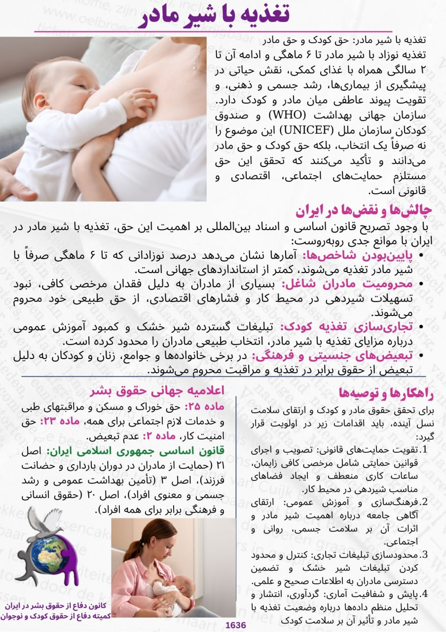 اطلاعیه ۱۶۳۶ کمیته دفاع از حقوق کودک و نوجوان با موضوع تغذیه شیر مادر