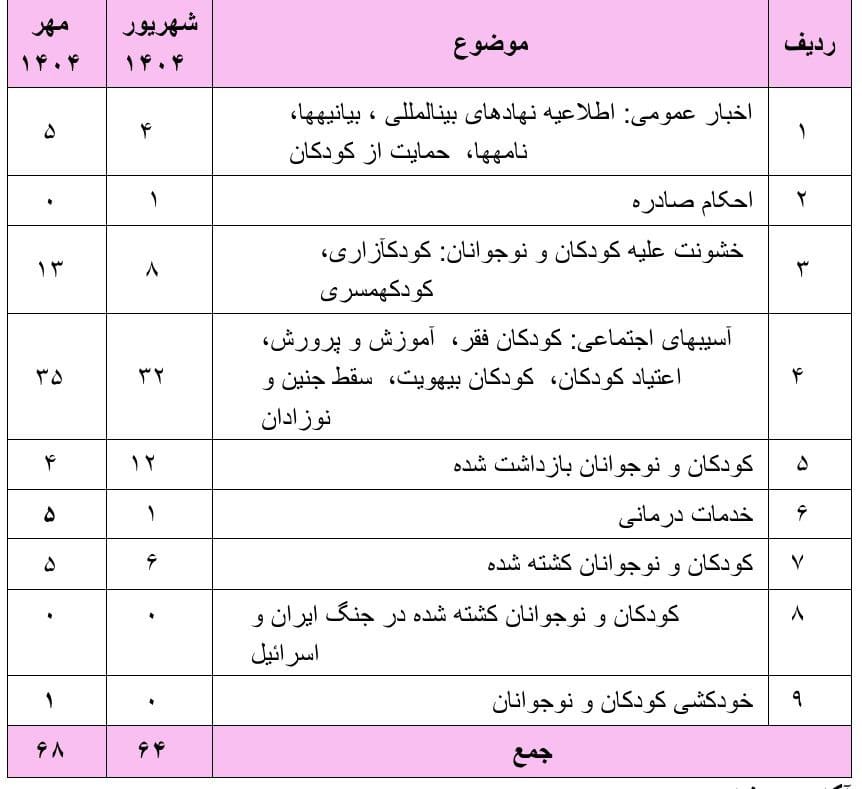 گزارش نقض حقوق کودک و نوجوان، مهر ماه ۱۴۰۴