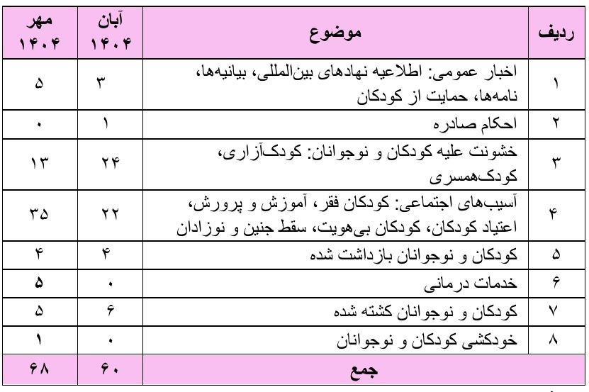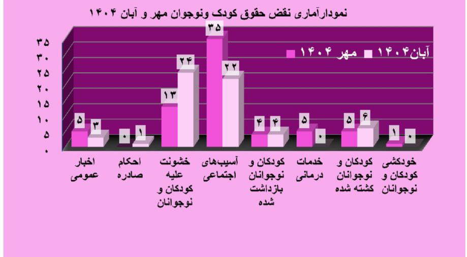 گزارش آماری نقض حقوق کودک و نوجوان،آبان ماه ۱۴۰۴