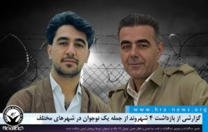 خبرگزاری هرانا – طی روزهای اخیر، منصور عبداللهزاده و منوچهر عبداللهزاده در نقده، نیما همتی و ماهان همتی، نوجوان ۱۷ ساله در اصفهان، توسط نیروهای امنیتی بازداشت شدند. از میان این شهروندان، منوچهر عبداللهزاده با اتمام مراحل بازجویی آزاد شده است.